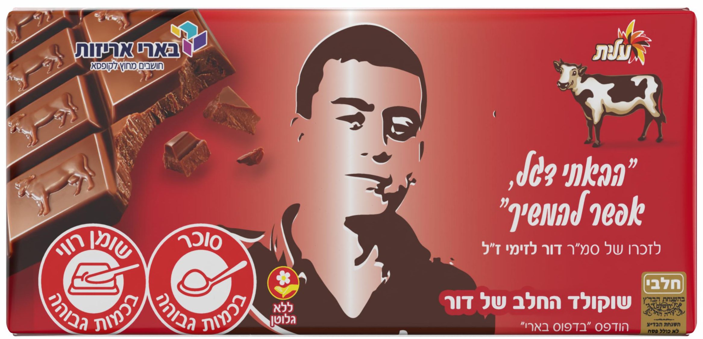 לבקשת המשפחה, הנצחנו את דולב באמצעות שוקולד פרה במהדורה מיוחדת עבור המשפחה.