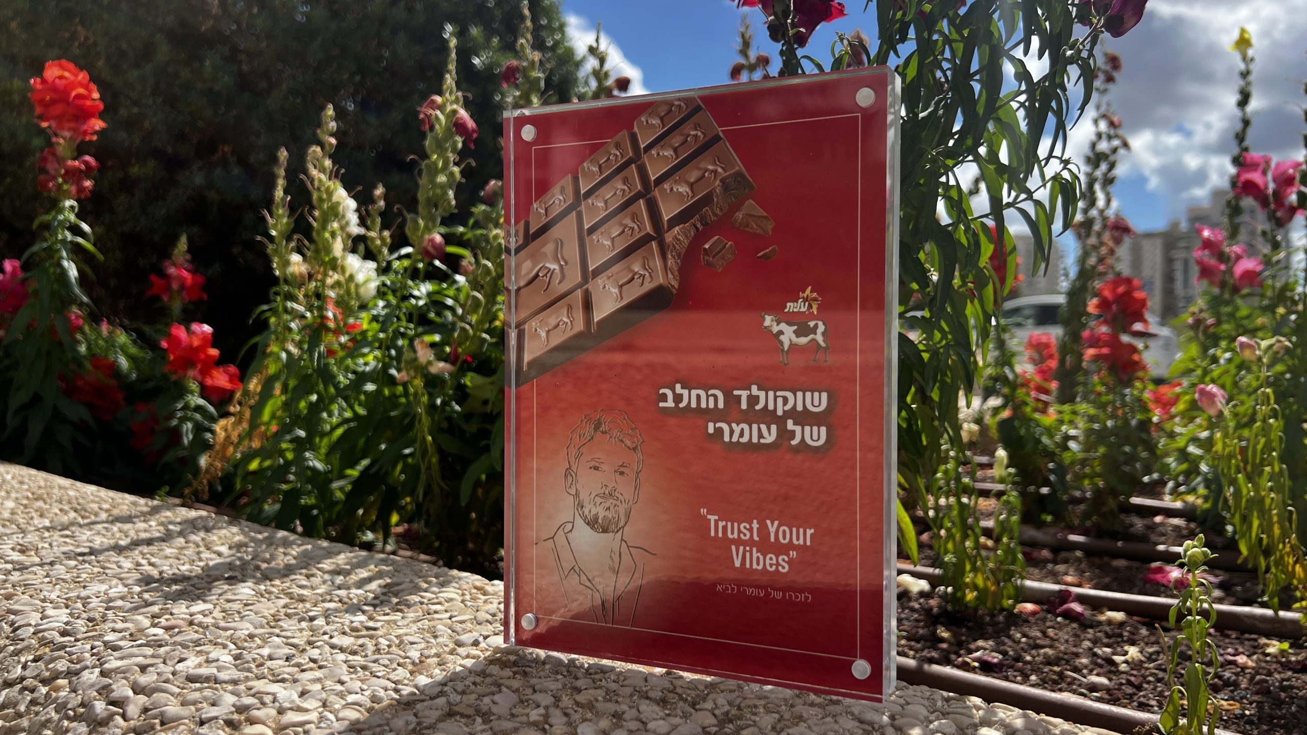 לבקשת המשפחה, הנצחנו את עומרי באמצעות שוקולד פרה במהדורה מיוחדת עבור המשפחה.