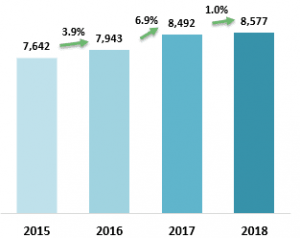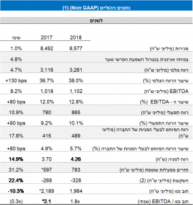 שטראוס מים מסכמת שנה מצוינת נוספת. היקף המכירות הסתכם בכ- 591 מיליון ש"ח – עליה של 9.2% לעומת שנת 2017. הרווח התפעולי גדל בצורה מרשימה והסתכם בכ- 65 מיליון ש"ח, לעומת כ- 36 מיליון ש"ח בתקופה המקבילה אשתקד. העלייה ברווח התפעולי נובעת בעיקר מגידול במצבת הלקוחות וגידול כמותי במכירות תוך המשך התייעלות תפעולית.