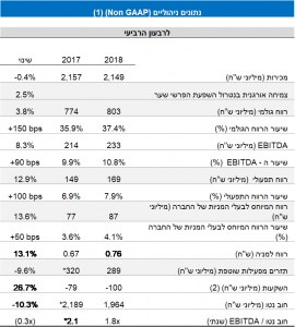 הערה: הנתונים הכספיים עוגלו למיליוני ש"ח. אחוזי השינוי חושבו על בסיס הנתונים המדויקים באלפי ש"ח.