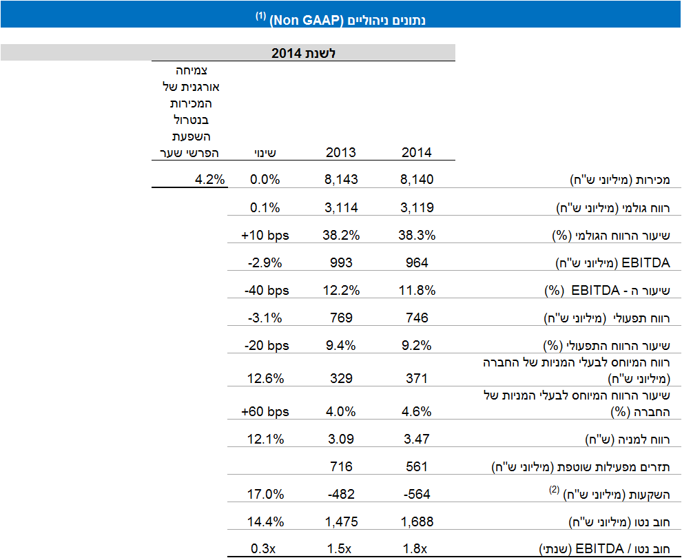 שטראוס מסכמת את שנת 2014 עם צמיחה אורגנית בנטרול השפעות שערי חליפין של 4.2% במכירות הקבוצה וגידול של 12.6% ברווח הנקי, בין היתר הודות להכנסות בגין שערוך עסקאות הגנה על מט"ח (1)