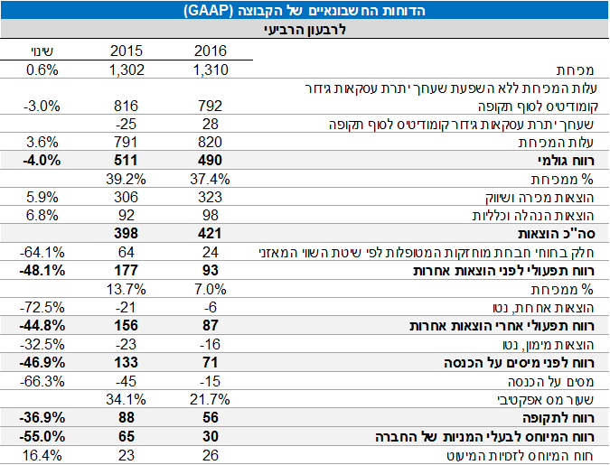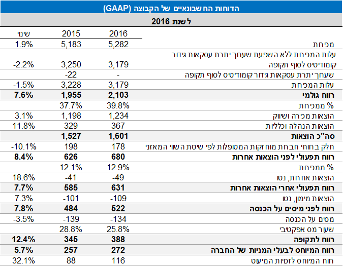 הדוחות הכספיים של החברה לרבעון הרביעי של שנת 2016 ולשנת 2016 ומצגת המשקיעים מפורסמים באתר קשרי המשקיעים של הקבוצה בכתובת: