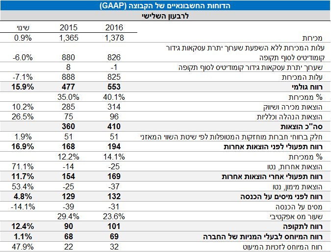 הדוחות הכספיים של החברה לתשעה החודשים הראשונים ולרבעון השלישי של שנת 2016 ומצגת המשקיעים מפורסמים באתר קשרי המשקיעים של הקבוצה בכתובת: